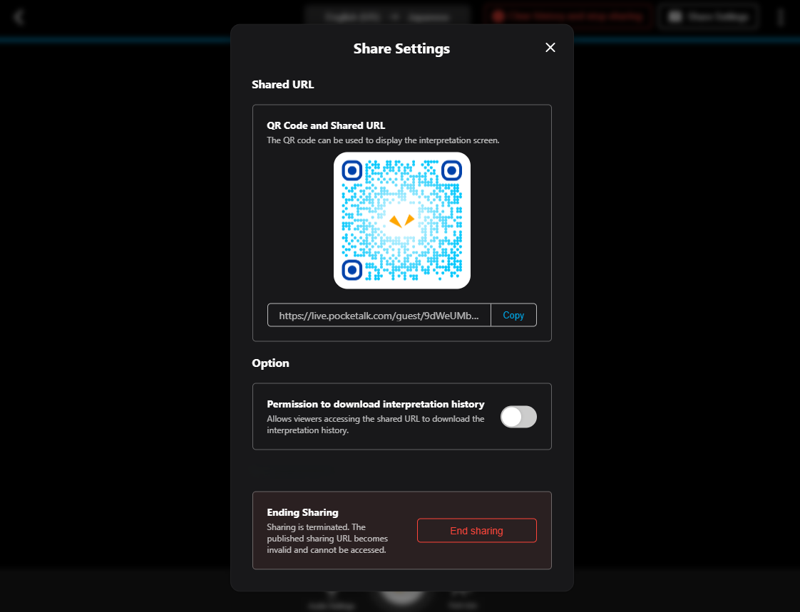 Unless you press the [End Sharing] button, the URL and QR code will remain unchanged
